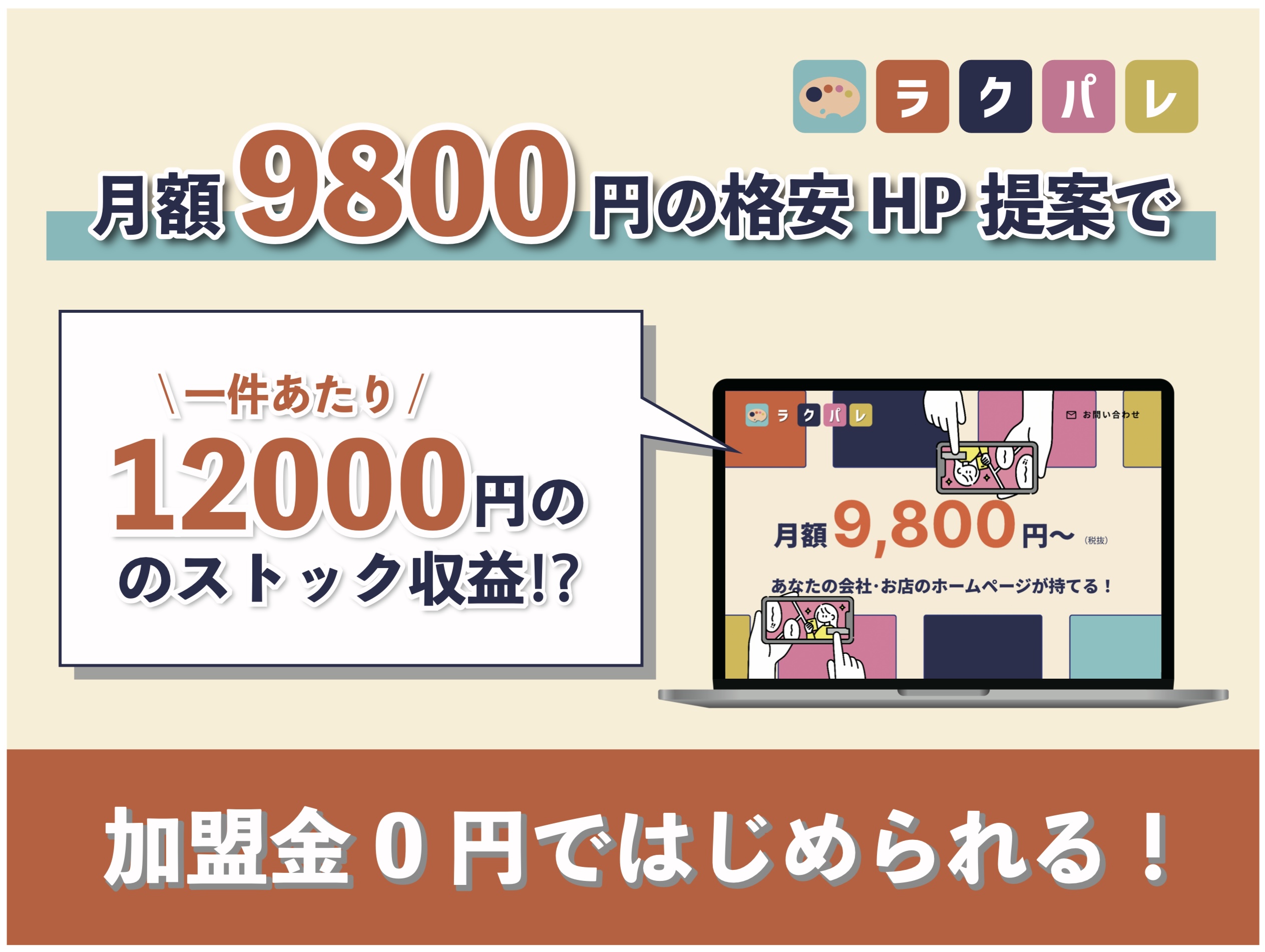 新着月額9800円のサイト提案で毎月1.2万_ラクパレ代理店 初期費用0円