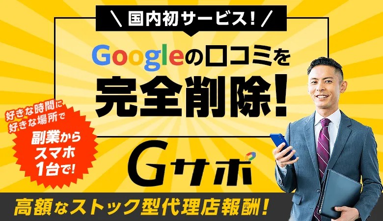 Gサポは口コミを削除し、良い評価を獲得・維持、経営状況を好転させる今までになかったサービスです。
