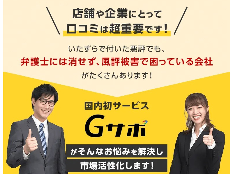 Gサポは悪い口コミを書かれてしまったお客様の悩みを解決するサービスです。