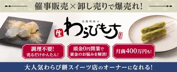 京都利休の生わらび餅フランチャイズの魅力の一部をご紹介!