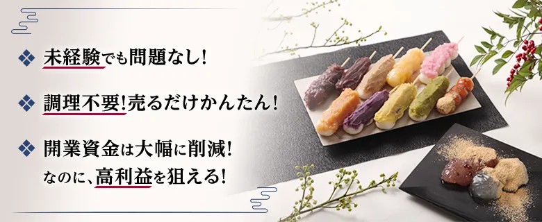 タピオカやマリトッツォなどブームに頼るのではなく、和菓子屋を基盤としながら最新のマーケティングを取り入れることで、全世代から「買いたい」「美味しい」と思って頂ける「飽きさせない」事業展開を叶えるビジネスです!