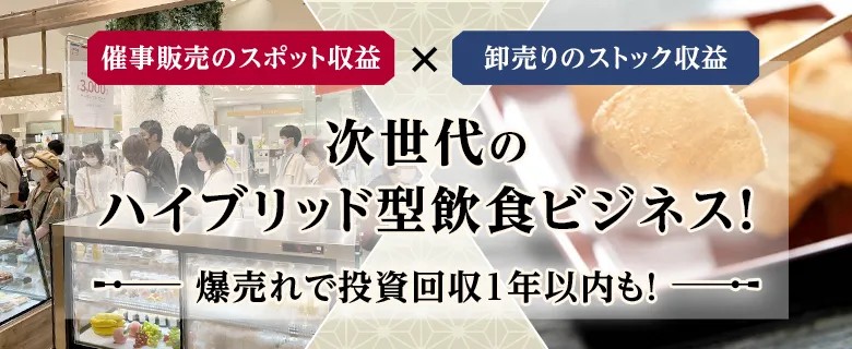 平均客単価が約1,400円と高く、催事での集客のしやすさや店舗家賃の負担の無い点もあり、利益が出しやすいビジネスとなっております!