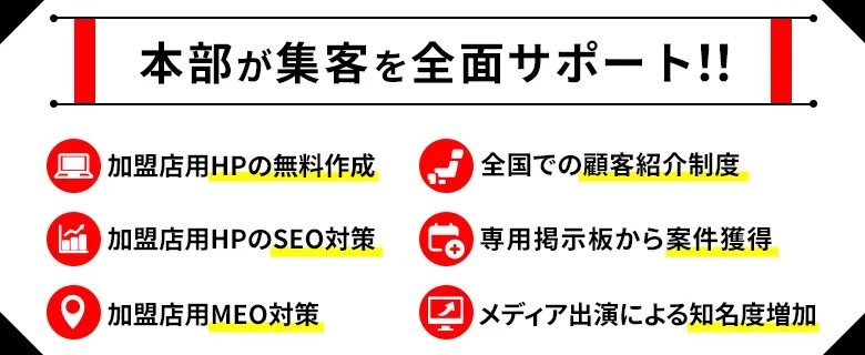現場に集中して頂ける様、時代に合わせた様々な集客方法で本部がサポート致します!